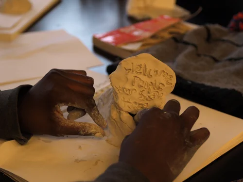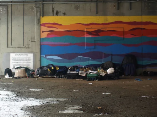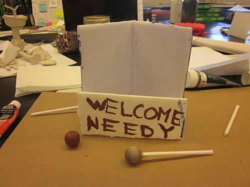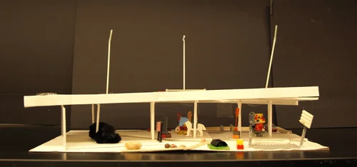 After visiting the “Hub,” these students were very affected by the area of our site that was being used as a “home,” storing clothes, being used for cooking, and also experiencing very cold and wet conditions. They decided, out of all the safety concerns in this area, that safety for the homeless was the first issue that needed to be addressed. They developed a hanging tipi system that allows residents to lower their personal tipi with their secret code and raise it back up for a safe night’s sleep. Their system would provide at least ten tipis that in turn provide shelter for 1-2 residents per unit. The scaled model they built used recycled materials from an exhibit at Pratt and is easily compacted and transported. Teaching was overseen by Erika Schroeder and Borinquen Gallo through the Taconic Fellowship hosted by the Pratt Center for Community Development.