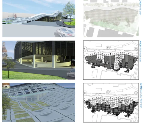 Zil is an institution for producing automobiles in Russia. They specialize across the spectrum from military vehicles to government limousines. In designing a showroom for Zil, our intention was to showcase what these cars did best. Focusing on the military vehicles, we developed a terrain that highlighted the strengths of these cars. This terrain became the roof structure for the building below, which used elegant glass rooms to display the high-end limousines. This project was done in collaboration with Shayna Cooper and Puja Chand.